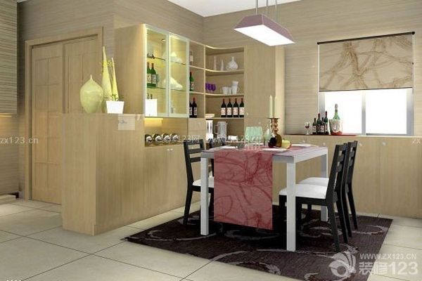 很多小戶型住房都采用客廳或門廳兼做餐廳的形式,在這種格局下,餐區的位置以鄰接廚房并靠近客廳最為適當,它可以縮短膳食供應和就座進餐的走動線路,同時也可避免菜湯、食物弄臟地板。餐廳與客廳之間可采用靈活處理,如用壁式家具做閉合式分隔,用屏風、花槅做半開放式的分隔。但需要注意與客廳在格調上保持協調統一,并且不妨礙通行。