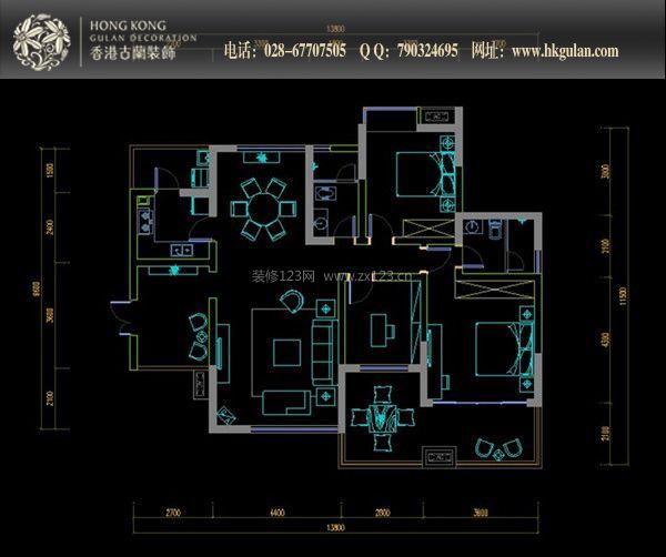 成都心怡紫荊城130㎡裝修戶型分析-香港古蘭裝飾