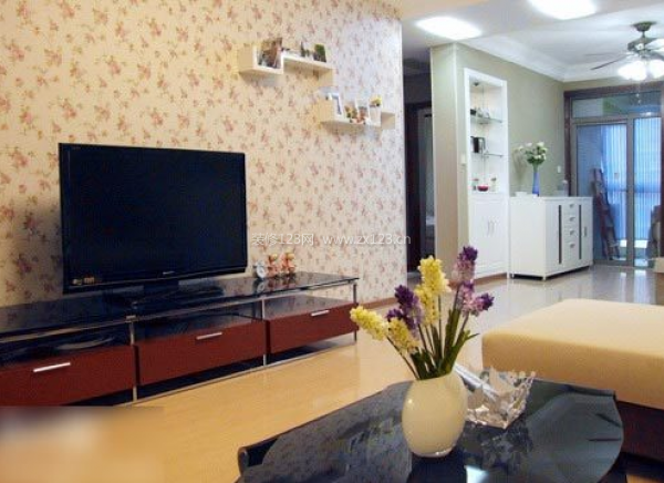 懸空的水泥板瑞然不能放置太多的東西,但是放置家中常用的小物品還是可以的,電視背景墻沒有設(shè)計(jì)的太復(fù)雜,重復(fù)的小細(xì)花就成為裝飾的美化、