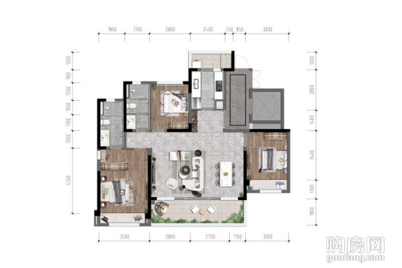 137㎡戶型(3室2廳,137平,)