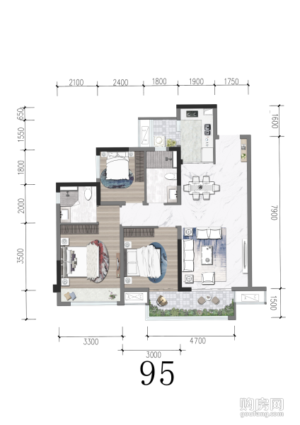 95戶型(3室2廳,95平,東)