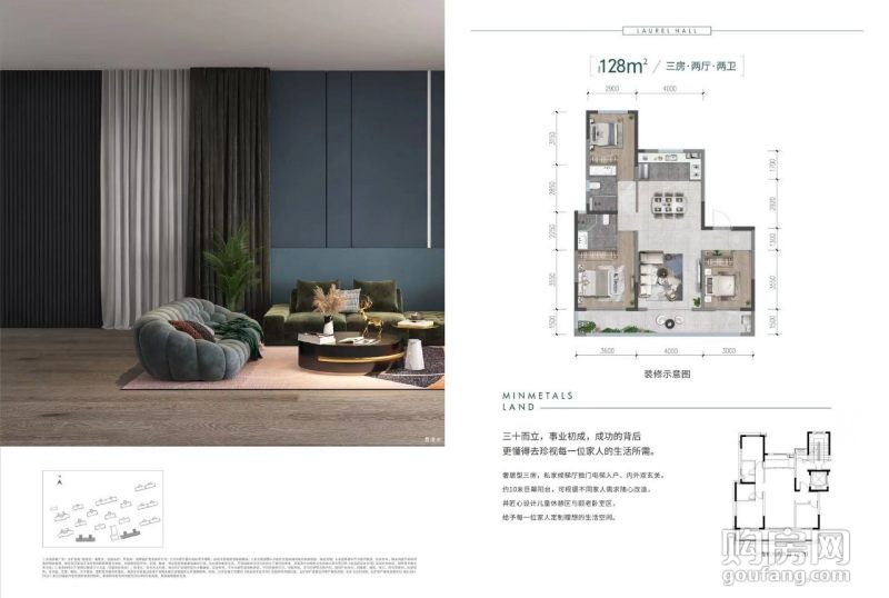 五礦香投桂語堂-建面約128㎡戶型(3室2廳,128平,南北)